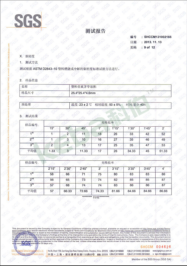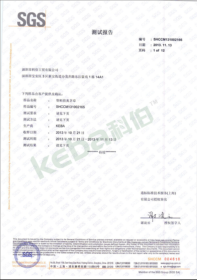 科佰仿真茅草檢測報告